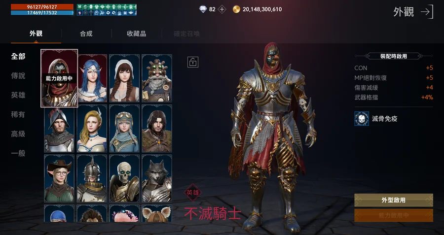 +8殷海薩、+0紅星、+7勇猛面甲、+4祝護頸、+3祝懷錶