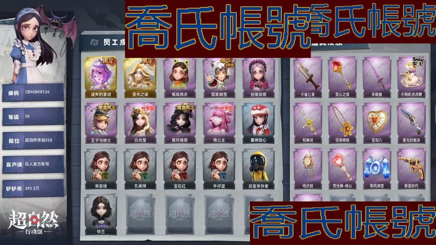 【OBCBMZW812442】金皮2;紫皮7;道具13;累充920元;金磚4;鏟鏟幣593.5萬;皮膚:小黃-遺失的童話,薇薇安-聖光之諭,小黃-呱呱雨衣,小黃-霓裳踏雪,愛麗絲-絲縷哀歌,阿念-王子與騎士,薇薇安-白光瑩,薇薇安-黑月輓歌,莉莉-情公主;道具:刺刀-小鯊匕首,鏟子-聖心之淚,桃木劍-永眠曲,長鞭-小狗蛇點點鞭,摸金符-祝禱詞,摸金符-花落精絕,腰包-寶劍八,短管獵槍-星光的裁決,音響-鳴沙鼓,熒光棒-桃心-熒光棒-桃心,噴氣揹包-乘風溯雪,轉輪手槍-新星時代,急救包-薔薇物語;飾品:頭飾-驚魂南瓜頭套,頭飾-精緻露比頭套,頭飾-大蔥明頭套,頭飾-火爆了頭套,頭飾-咬咬鯊頭套,頭飾-炙熱燒烤,頭飾-駝半仙頭套,頭飾-魚頭怪頭套,頭飾-烈焰紅唇頭套,頭飾-面具馬頭套,頭飾-哈士奇頭套,頭飾-嘻嘻頭套,頭飾-滑稽頭套,頭飾-呆滯頭套,背飾-天使的呼喚,背飾-毛球夾子,背飾-在逃小新娘,背飾-雲夢之星,掛飾-釵頭鳳,掛飾-未竟樂園;動作:動作-luvaboy,動作-鴛鴦戲,動作-鵬友搖,動作-舞臺中心,動作-心跳搖,動作-要糖,動作-舉牌,動作-律動迪斯科,動作-山楂樹之舞,動作-抬手;工牌背景:卷珠簾,情語塔,冰晶宮,點點萌伴,聖光之誓,童話扉頁;工牌動作:虔誠之姿;員工:小黃,愛麗絲,零,阿念,逍遙,薇薇安,巫鈴兒,莉莉,艾倫,愛德華,蘭;段位:超自然傳說358;等級:50;【巨人官方賬號】