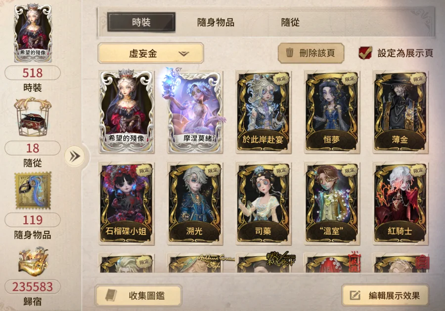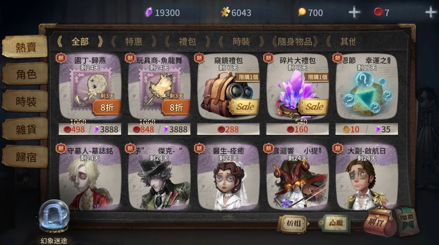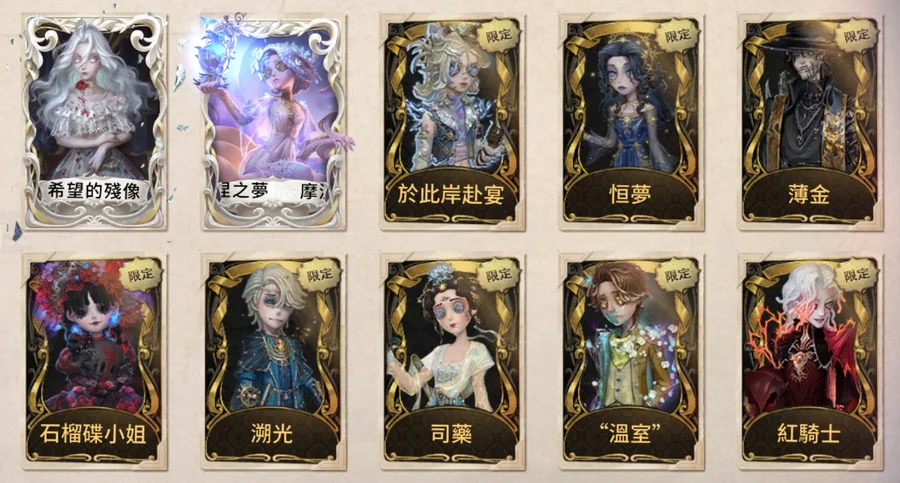 歸宿:迷霧山莊、福爾摩斯活動限定歸宿221B、沉默宮殿、魅影古堡、莊園、事務所