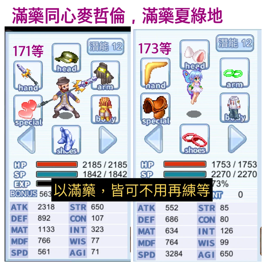 頭:忠誠帽MATK+30,結晶+78(抽不到ATK帽)