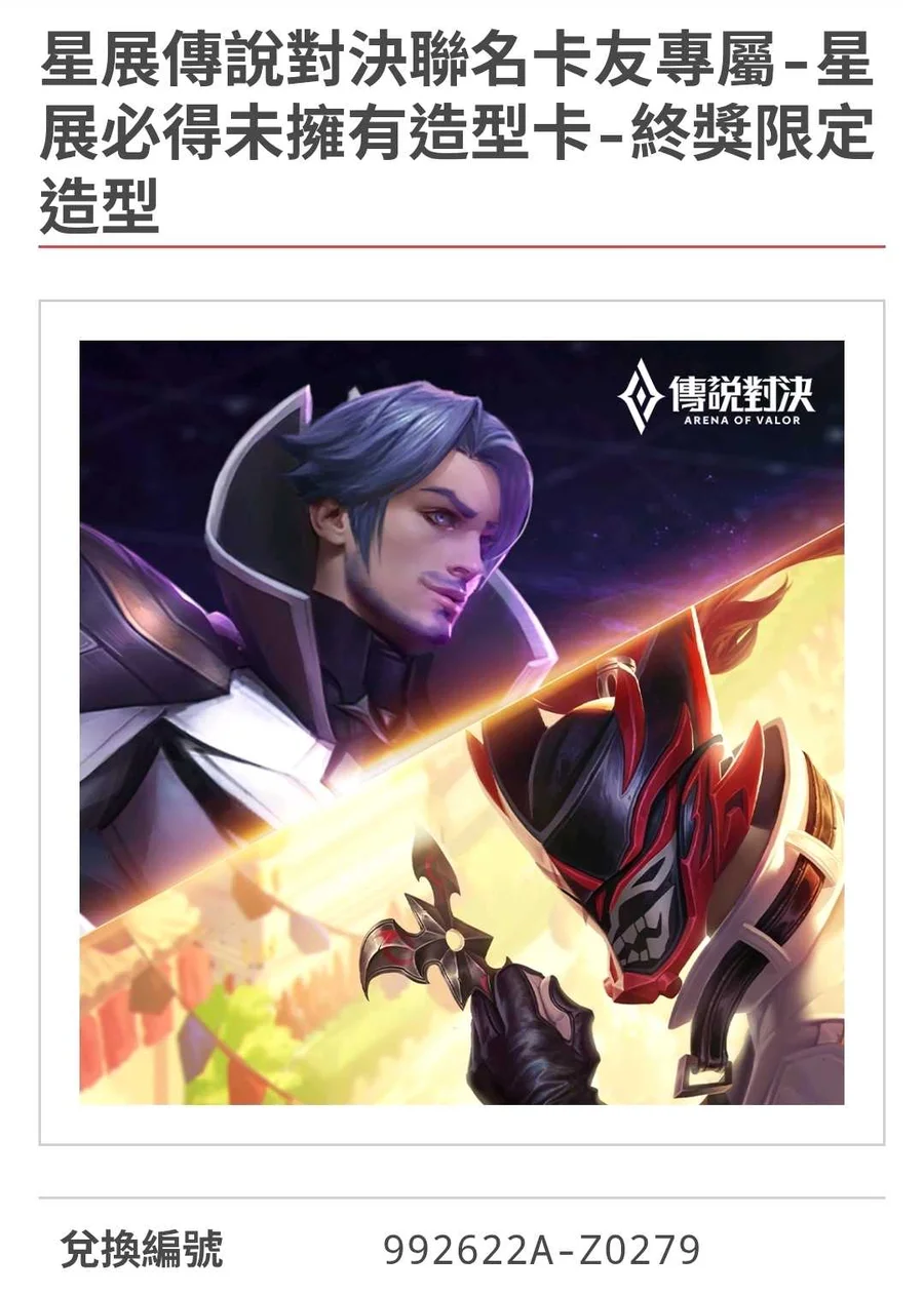 星展傳說對決聯名卡友專屬-星展必得未擁有造型卡-終獎限定造型