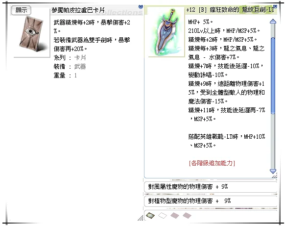 +12 B階 龍紋劍LT(無卡.風屬.植物怪增傷)= 1000T