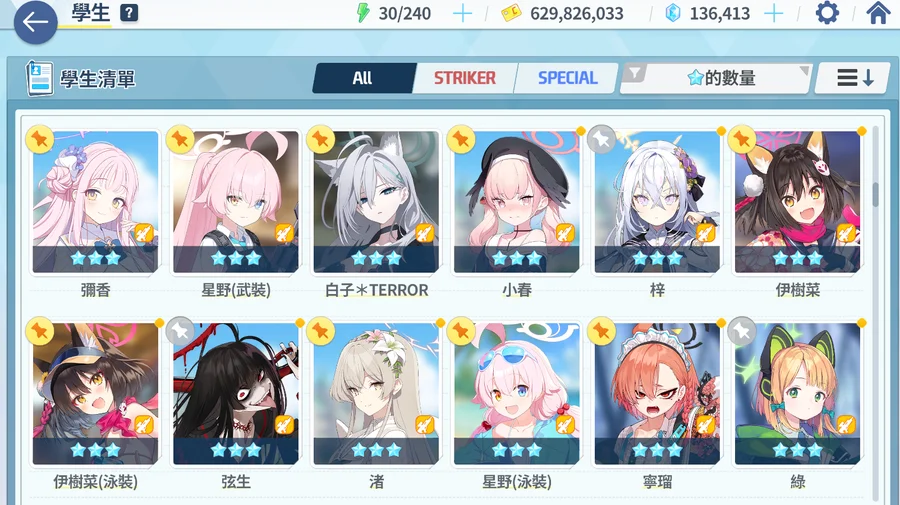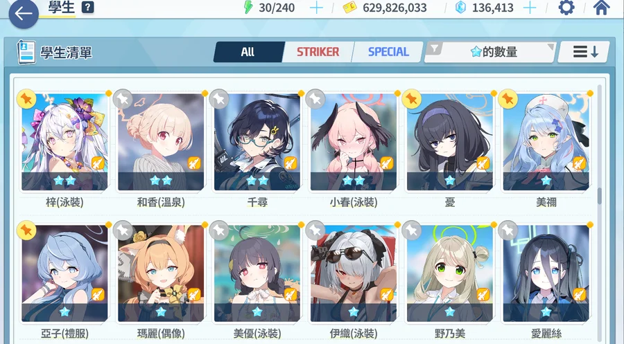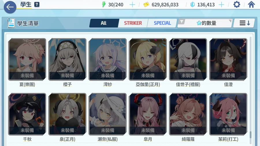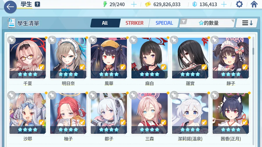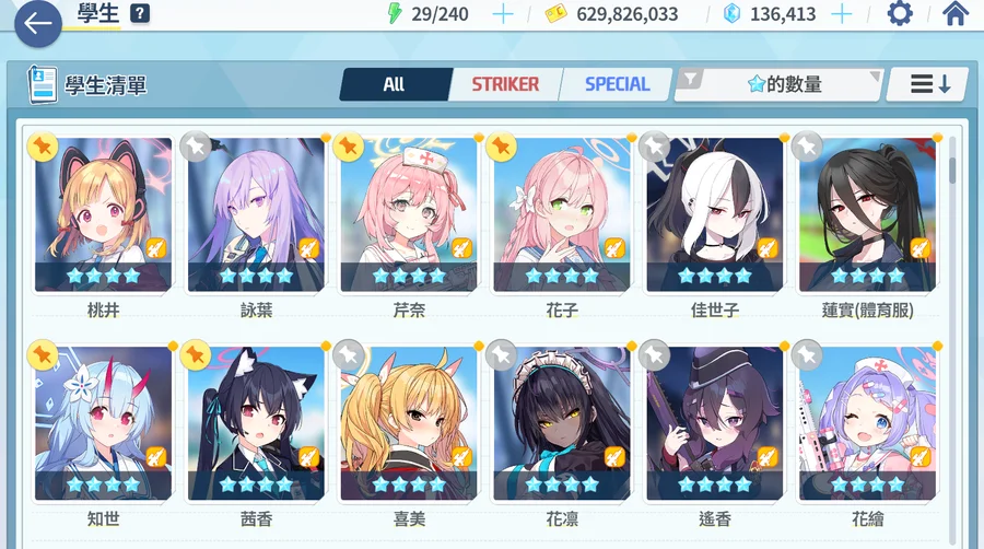 主力角色絆數約20~30左右 禮物也屯了很多基本上夠弄好幾個50絆