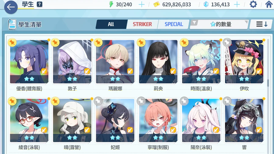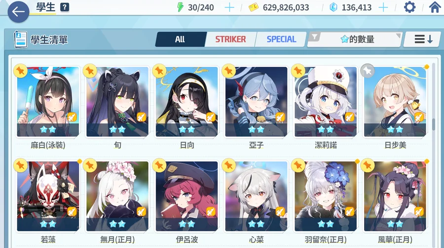 角色專精基本如圖 神名文字充裕(仍有將近7000個) 基本上想專誰就專誰無所謂
