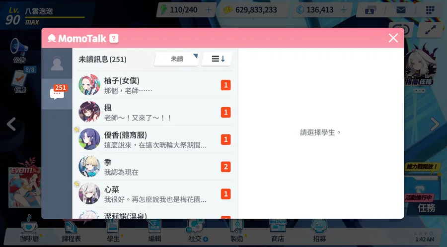 Momotalk有250+條以上未讀可挖