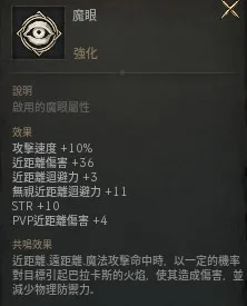 【魔眼】:火/水 24分 (主火眼: 攻速10%/近傷+36/近迴+3/無視近迴+11/STR+10/PVP近傷+4)