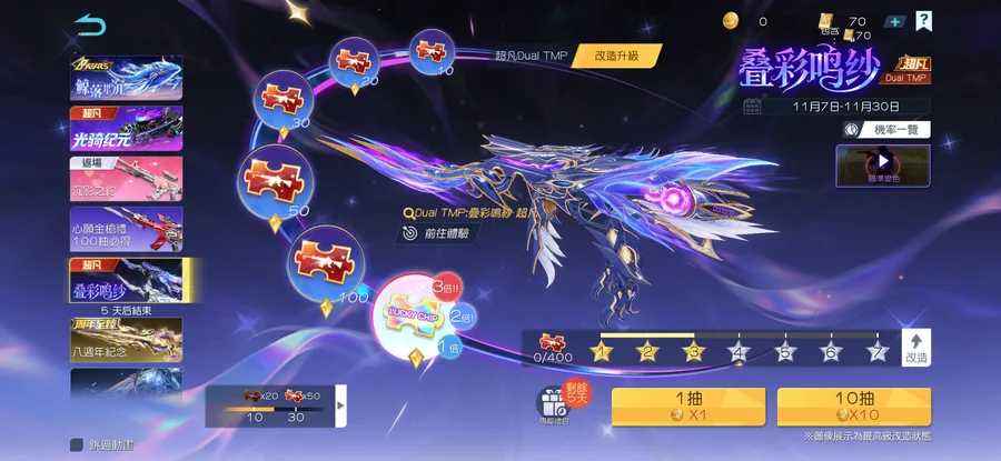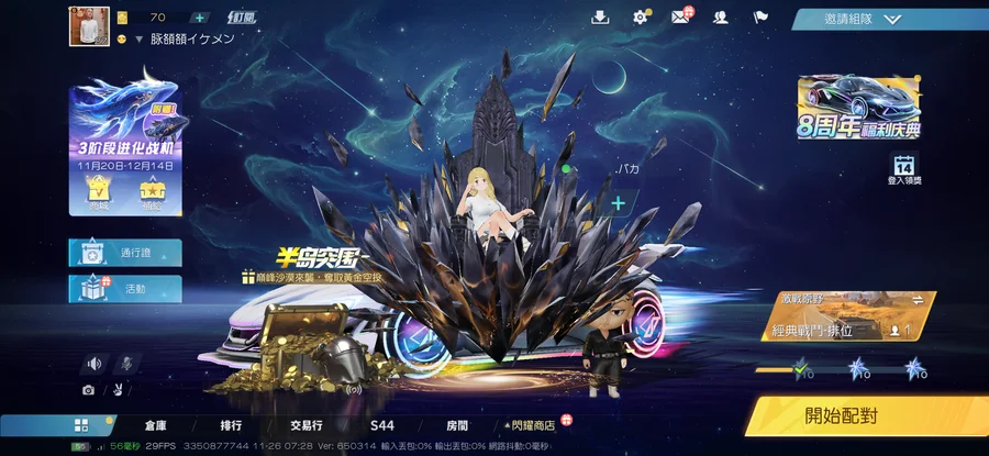排位永恆‼️‼️超凡3星雙槍‼️🔥滿改滿星活動光輪轎車‼️🔥轉盤紫色雙跑🔥‼️轉盤稱號擁有‼️🔥多把活動進度星金槍🔥🥹多樣活動金裝/日本金裝🔥活動陳設造型‼️活動翼裝造型‼️🔥多樣活動主題🔥日本語音包‼️活動夥伴🔥附上改卡*1