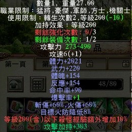 +15虎鉤劍,已用兵甲190等可用,其他看圖