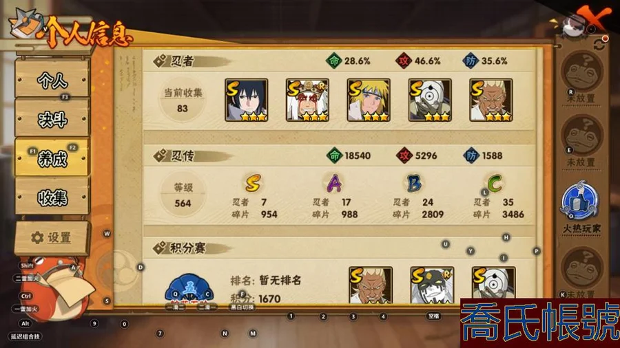 【OBHAWYM271842】VIPV8級;S忍7個;A忍16個;通靈獸15個;S忍:白面具宇智波斑,天道佩恩,永恆萬花筒宇智波佐助,忍界大戰艾,舞之豪傑自來也,大筒木桃式,波風水門;A忍:幻之真容旗木卡卡西,忍界大戰李洛克,忍界大戰日向寧次,四代目土影黑土,須佐能乎宇智波佐助,暴怒宇智波帶土,萬花筒寫輪眼宇智波佐助,疾風傳我愛羅,最終章日向雛田,不緣,宇智波泉奈,迪達拉,邁特凱,幹柿鬼鮫,蠍,猿飛阿斯瑪;永久通靈獸:砂之守鶴,藍蛇,蛤蟆吉,忍龜,鐮鼬,猿魔,山椒魚,蜃,蛤蟆仙人,蛤蟆健,辛牙,蛞蝓,忍犬,鮫鯊,烏鴉;V8/桃式/白麵/忍者艾/紫狗/暴怒小孩