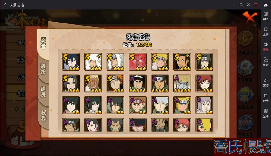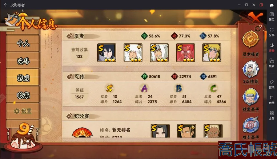 【OBHAWYM787242】VIPV8級;S忍10個;A忍24個;通靈獸16個;S忍:傳說中的三忍自來也,天道佩恩,穢土轉生宇智波鼬,永恆萬花筒宇智波佐助,木葉創立千手柱間,忍界大戰艾,舞之豪傑自來也,須佐能乎宇智波鼬,死門邁特凱,波風水門;A忍:幻之真容旗木卡卡西,漂泊浪客佩恩六道,四代目土影黑土,青年波風水門,近松十人衛千代,須佐能乎宇智波佐助,忍界大戰秋道丁次,萬花筒寫輪眼宇智波佐助,死司憑血飛段,疾風傳我愛羅,桃式顯現漩渦博人,六代目水影長十郎,不緣,五代目雷影達魯伊,不動,緋流琥蠍,宇智波泉奈,迪達拉,飛段,邁特凱,幹柿鬼鮫,蠍,猿飛阿斯瑪,忍界大戰土臺;永久通靈獸:砂之守鶴,藍蛇,蛤蟆吉,忍龜,鐮鼬,山椒魚,蜃,蛤蟆仙人,蛤蟆健,蛤蟆龍,零尾,熊貓,蛞蝓,忍犬,鮫鯊,烏鴉;v8/木創柱間/死凱/死鼬/紫狗/忍戰艾/三自/1直購a/熊貓