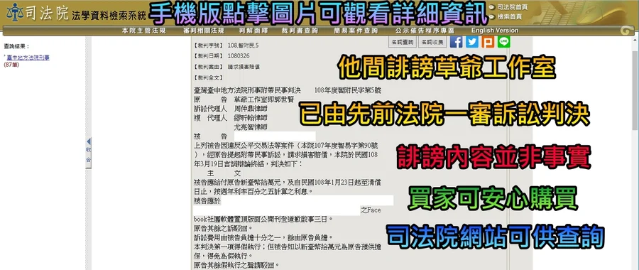 不實情事已有法院判決書為證(草爺工作室臉書粉專已有判決證明)