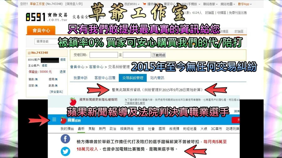 4.草爺20萬資本額跟8591的五萬保證金將供保障購買等損失(圖檔可證,可放心購買)