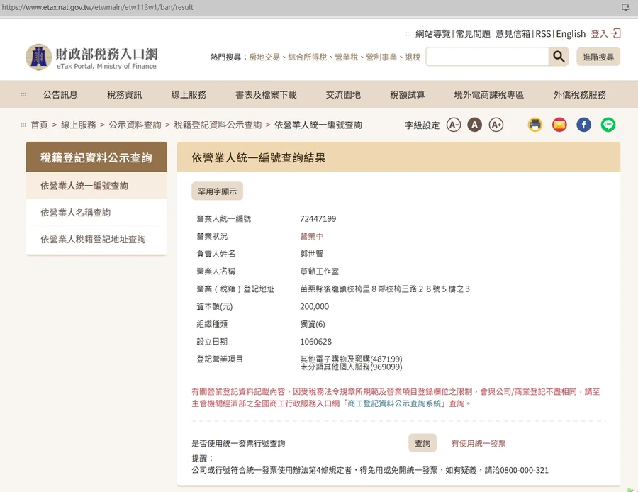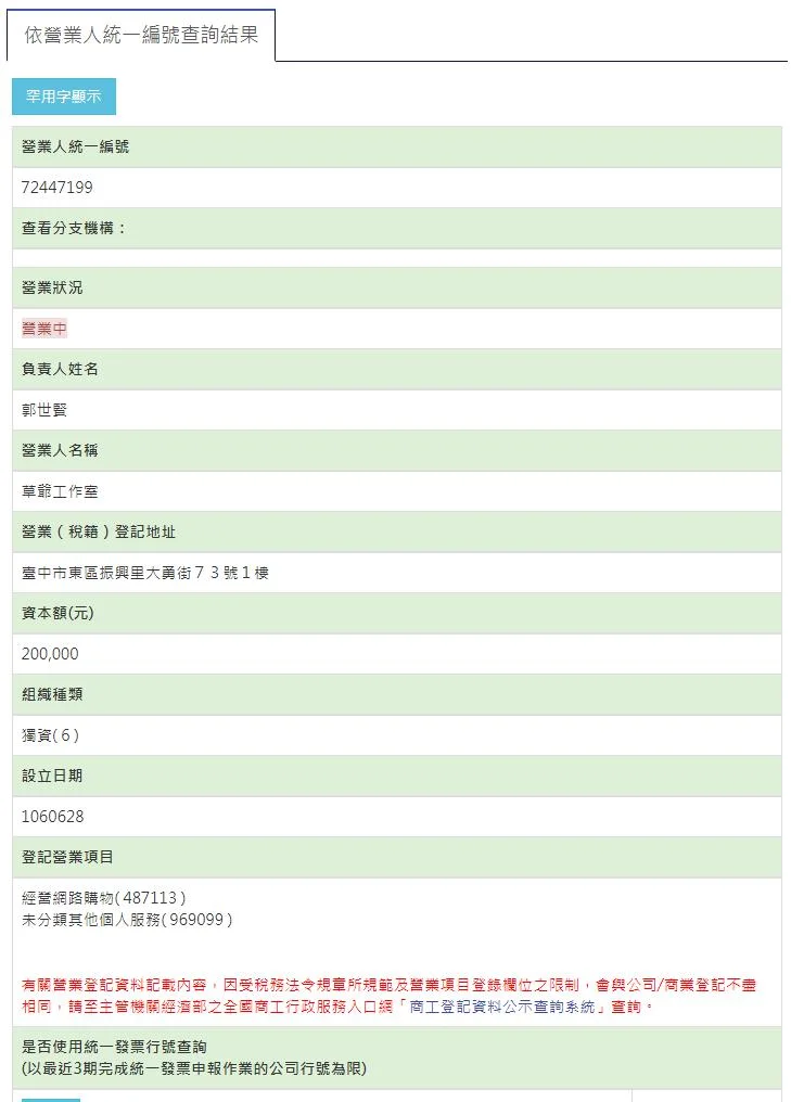 3.全公開營業登記證詳細資料(唯一有公開營業地址有負責人!圖檔可證,可放心購買)
