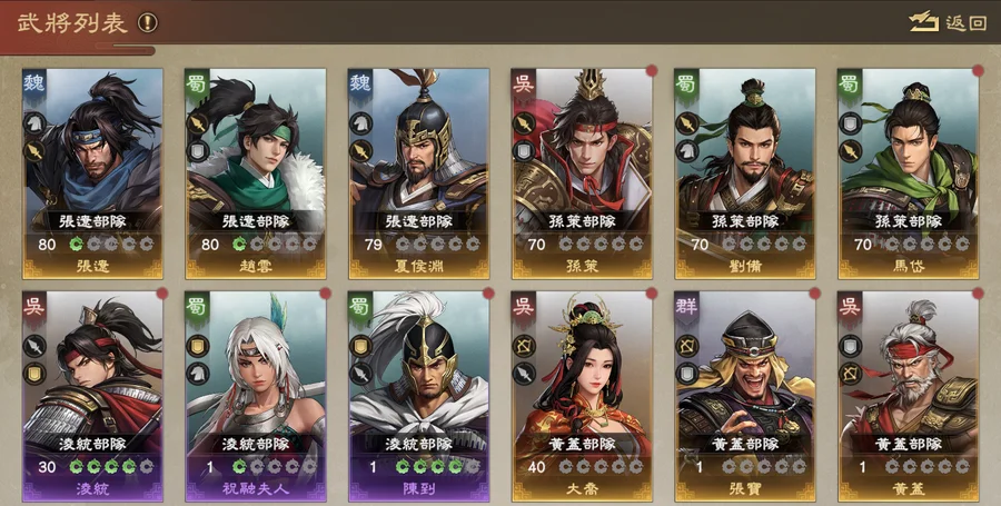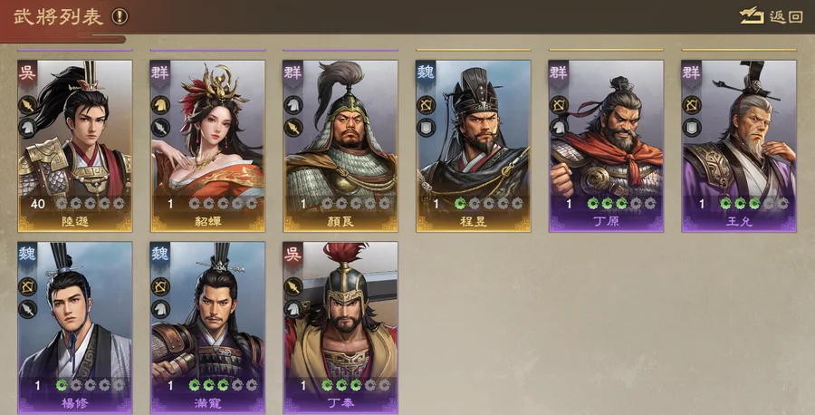 另有張寶、貂蟬、大喬、顏良、黃蓋、程昱、陸遜等武將