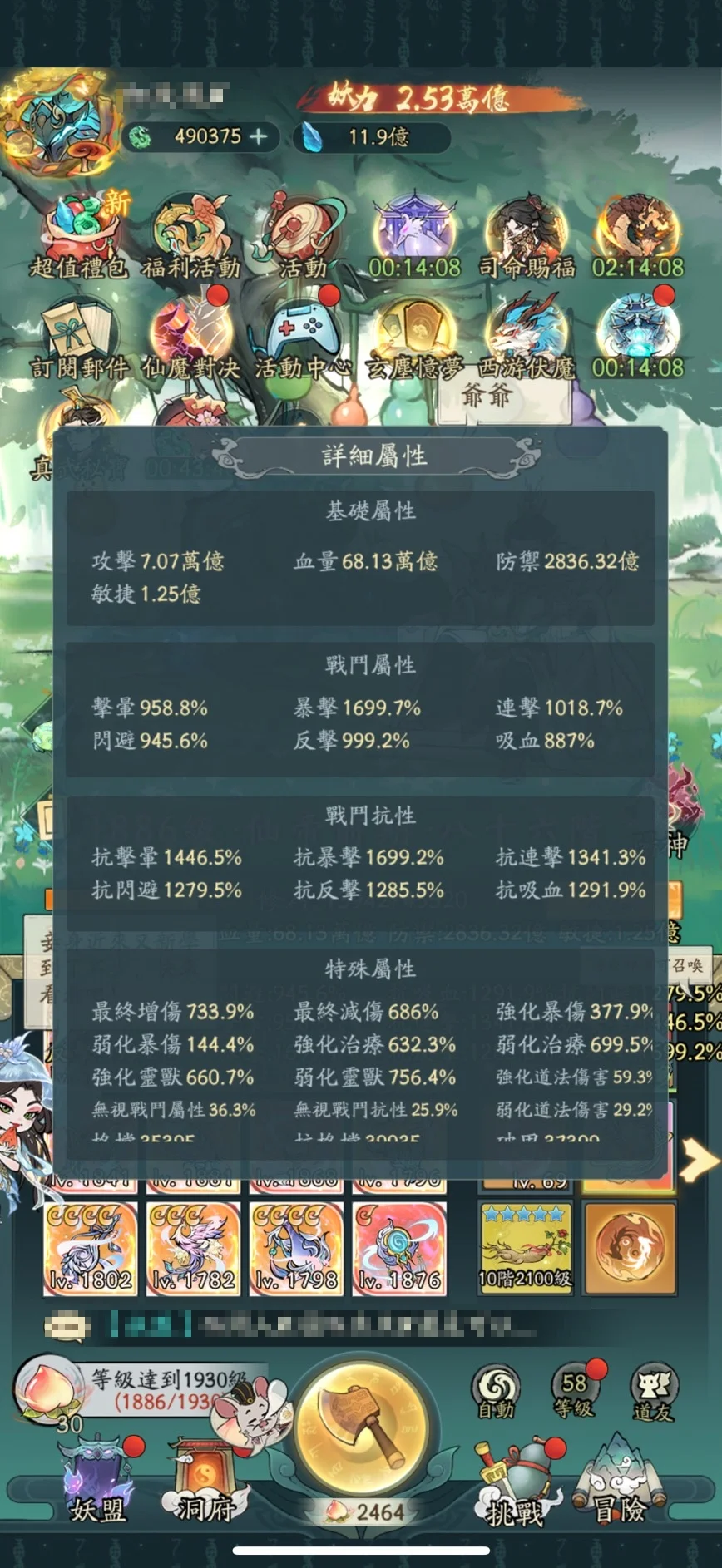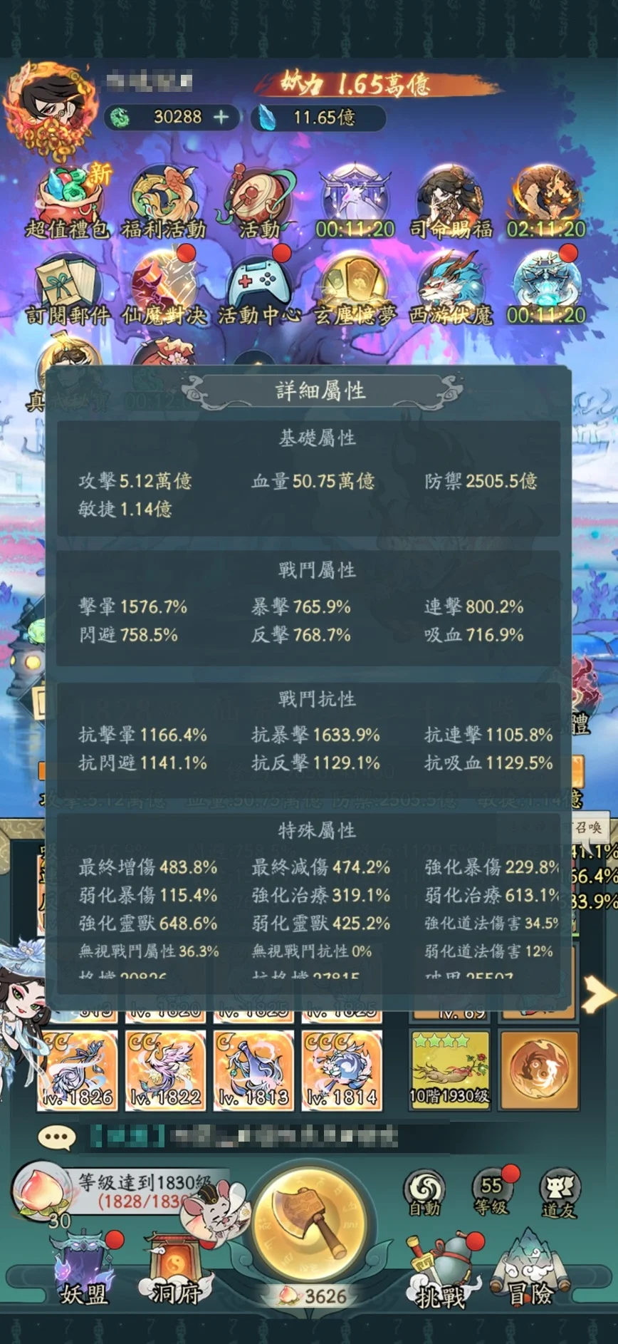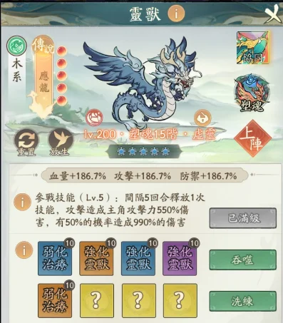 ─ 丹陽10(主帳)─ ‧神獸:三星女媧 ‧增傷:733 減傷:686 ‧羅喉塑魂20 + 天賦20UP
