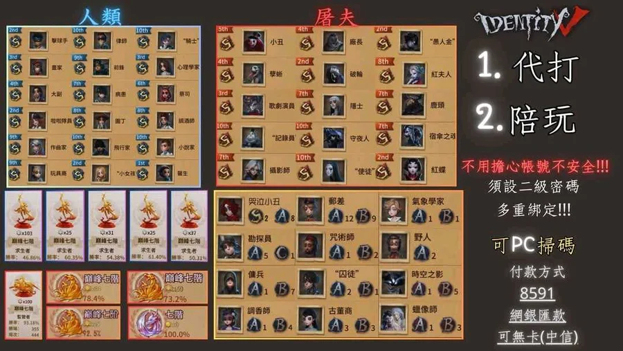 全8591最便宜!人屠雙代打!快速穩定又便宜 幫您打排位或者打牌子!
