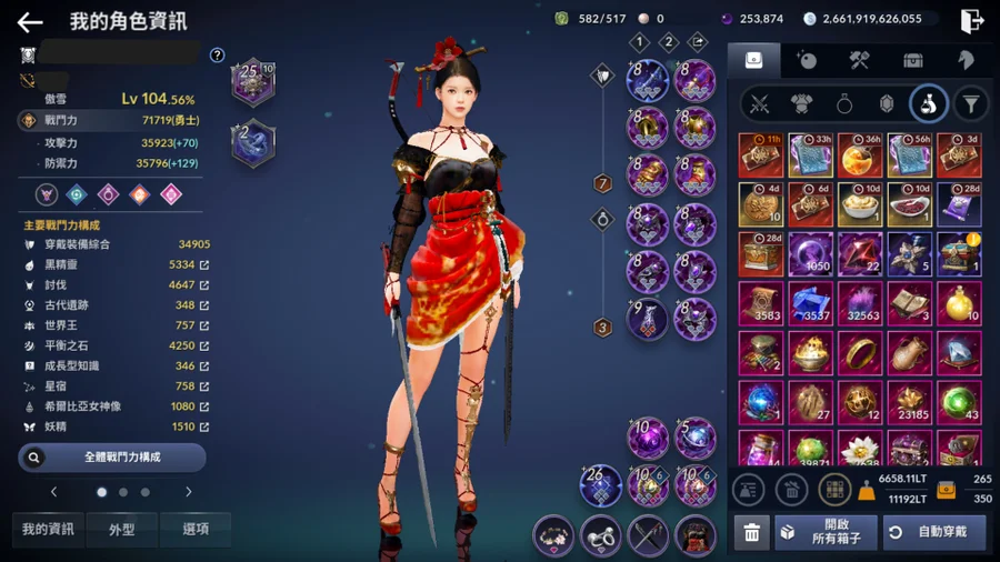 ●這裡提供多資源並儘量保留部分彈性避免不必要花費、遊戲樂趣~可參與絕大多數活動/遊戲機制的戰力門檻!! 帳號花長時間累積至少1年以上資源構成^^_2022年7月至今幾乎所有特殊活動或序號虛寶皆有領取,比如特殊寵或頂數值道具等...(目前裝備的構成需消耗~數百顆以上 鑽石&阿克拉德、數萬以上次元碎片、數百顆以上空虛之眼、數百顆以上弘益的火花、數萬以上影子結、數兆以上銀幣或上百萬張突破復原券,上述也是主要材料~ ),資源多,戰力好升!! 目前遊戲中多數提升戰力的資源已改為可交易,可透過交易所花費銀幣購得/利於新手追進度!! ~ 隨點即拿不需等候的戰力取得空間多,部分一次性獎勵未領。在此戰力階段,仍可短時間提升數千戰力...(儘量保留遊戲樂趣且有資源可玩→高成長效率,以花費的時間及精力來說,不錯的CP值! 按表操課,戰力皆可顯著提升~但建議享受遊戲樂趣勝於追戰力,資源建議留到後期再做分配在戰力提升會更有效率,將不易陷入資源不足而卡戰難升冏境!)