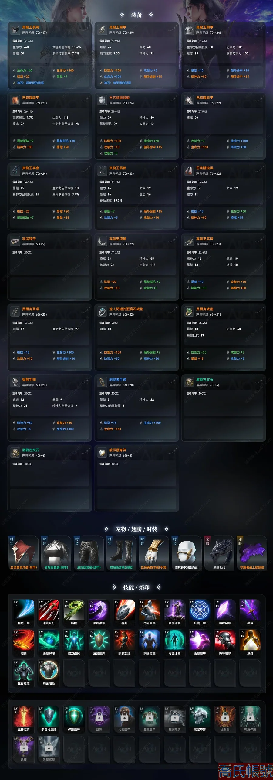 【OBYGWOE440342】【希埃爾】45級天族女守護星,裝等2561,守護力536,支線進度全滿,封印副本全種族進度全滿,羽毛進度滿級,戰令會員:伊斯夏爾肯傭兵通行證,天加隆會員,世界呼喚通行證,微風會員,稱號:跨越羅生門的,斐爾特朗聖者,黃澄澄的光彩,寵物:黑龍;賣家說: 7件真龍,武器15三星,主要主動技能16級+,成品打造,2640戰鬥力,截圖沒更新。