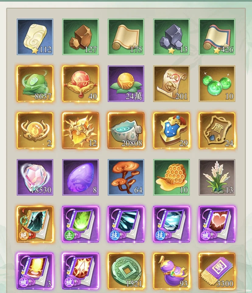 主要角色裝備皆是白一星到白五星不等
