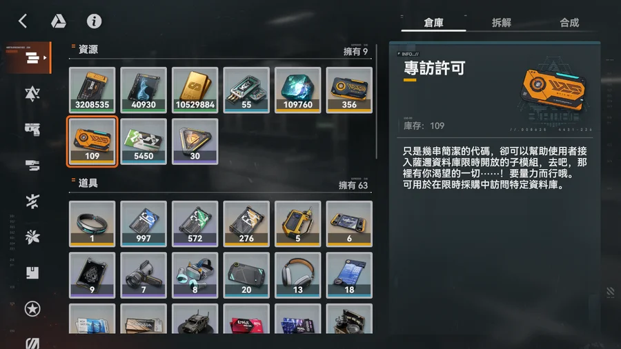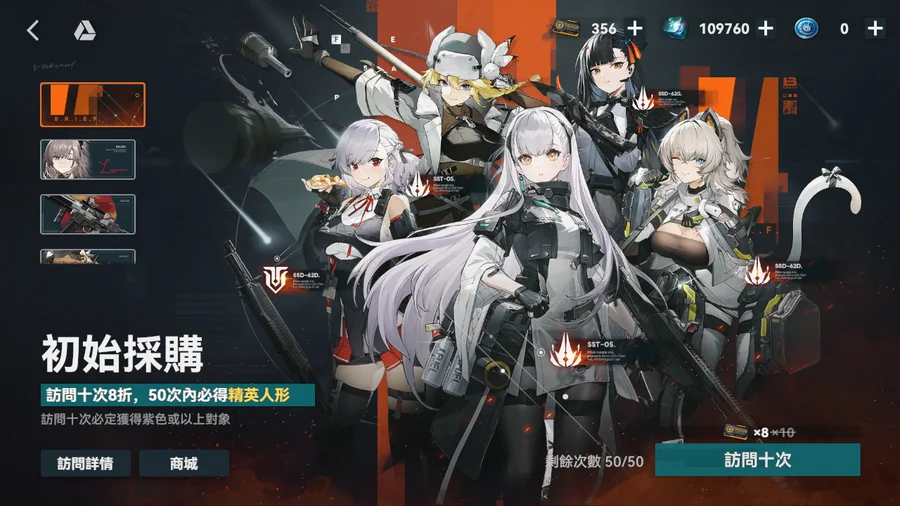 專訪許可109(限定抽) + 訪問許可356(常駐抽) + 坍塌晶條109700(鑽石) + 新裝許可37