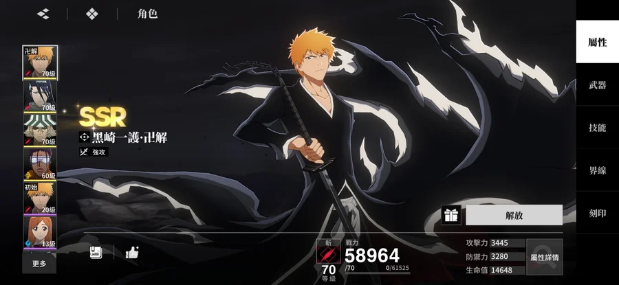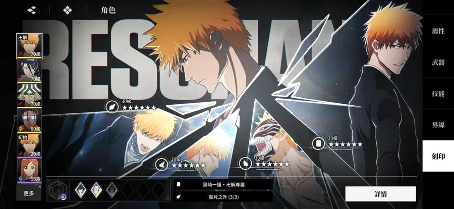 53等退坑出售、有滿突SSR卍解黑崎+專屬刻印突滿+專屬核心突4<卍解一護專屬名片專屬稱號>,多隻SSR角