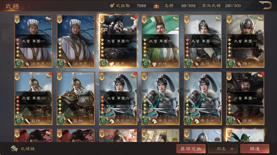sp祝融隊 魏國張遼 sp張飛 >> pvp專用
