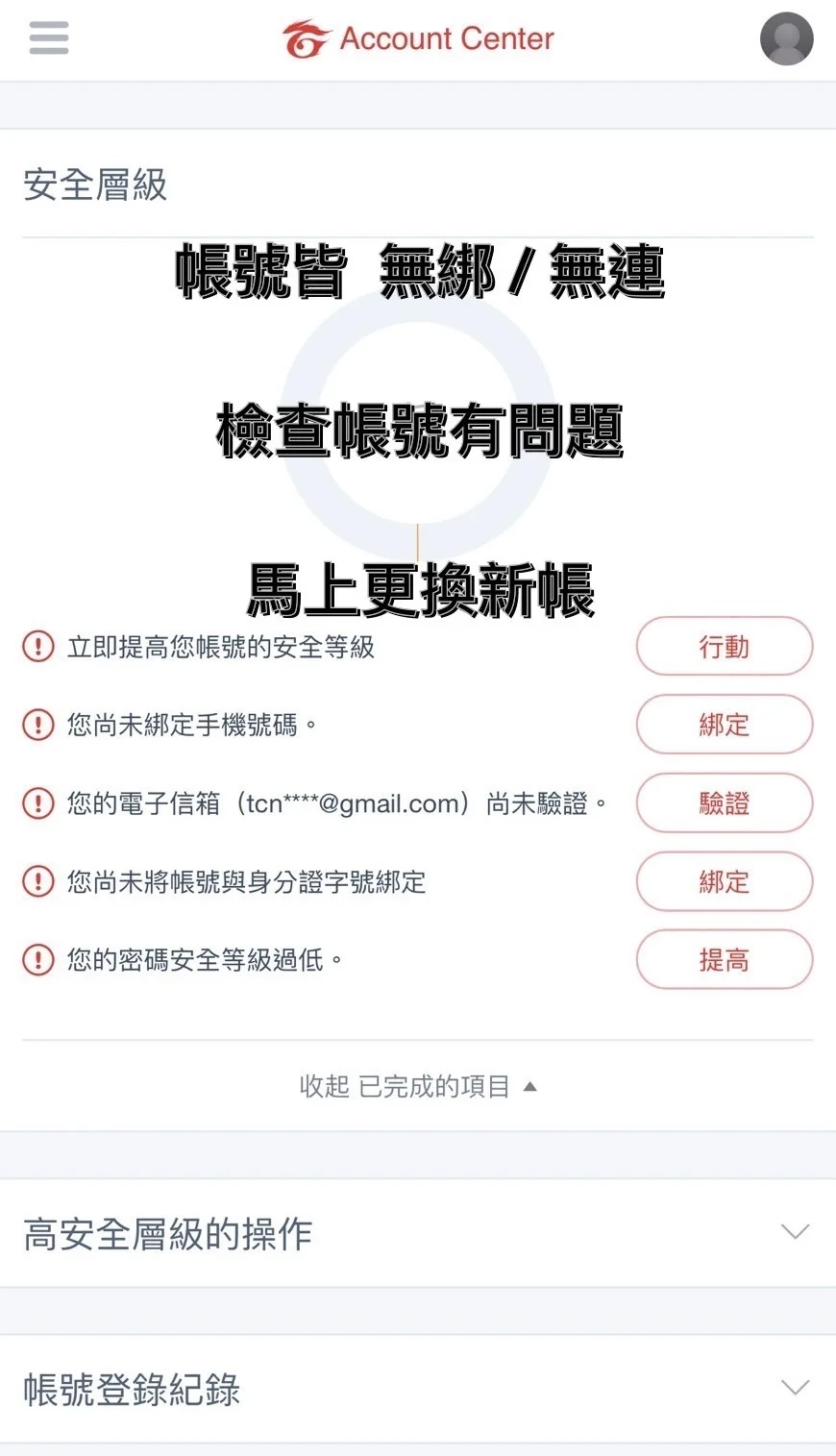 ✅ Garena 登入 ✅ 可改密碼 ✅ 未 綁 定