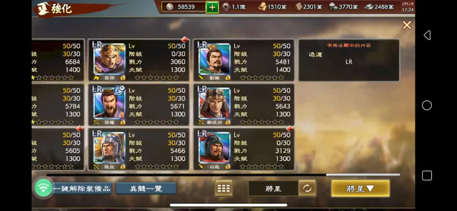 董袁皆滿 雙輸出位C好C滿,補抽關羽一星,寶玉也有再補 夠支撐日常使用極求卷還有629張讓你補關羽得力副手占術339張辭舊迎新箱*1(可抽三兵種其一LR)LR自選箱*227LR滿星3LR五星19LR四星基本買了不課也無所謂了