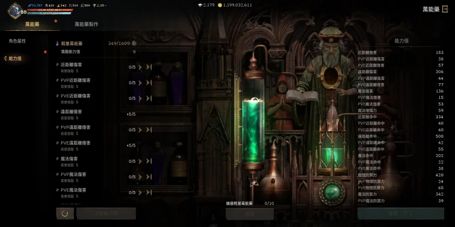 【萬能藥水】:萬能藥30滿,輕量350/1609 擴展(0/10)