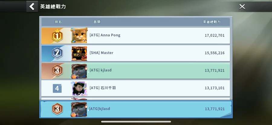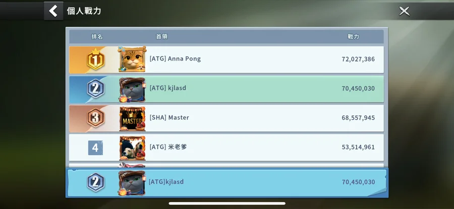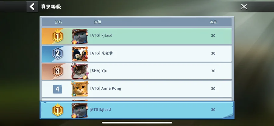 目前公會總排名第二名,第一次王國戰我是領袖(會輪流當)