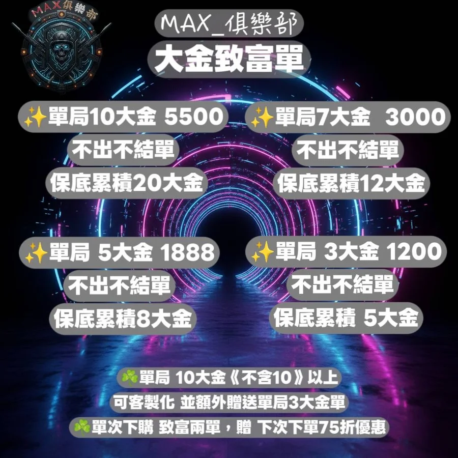 可客製化 並額外贈送單局3大金單)