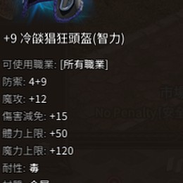 賣+9冷燄猖狂頭盔(智力) 封頂魔攻+12 殺無赦