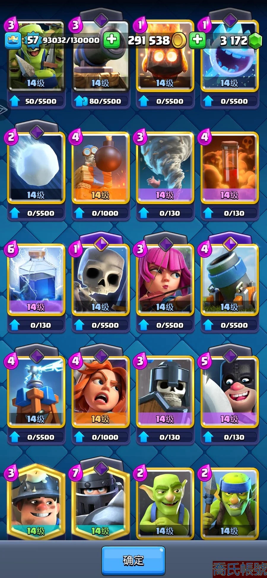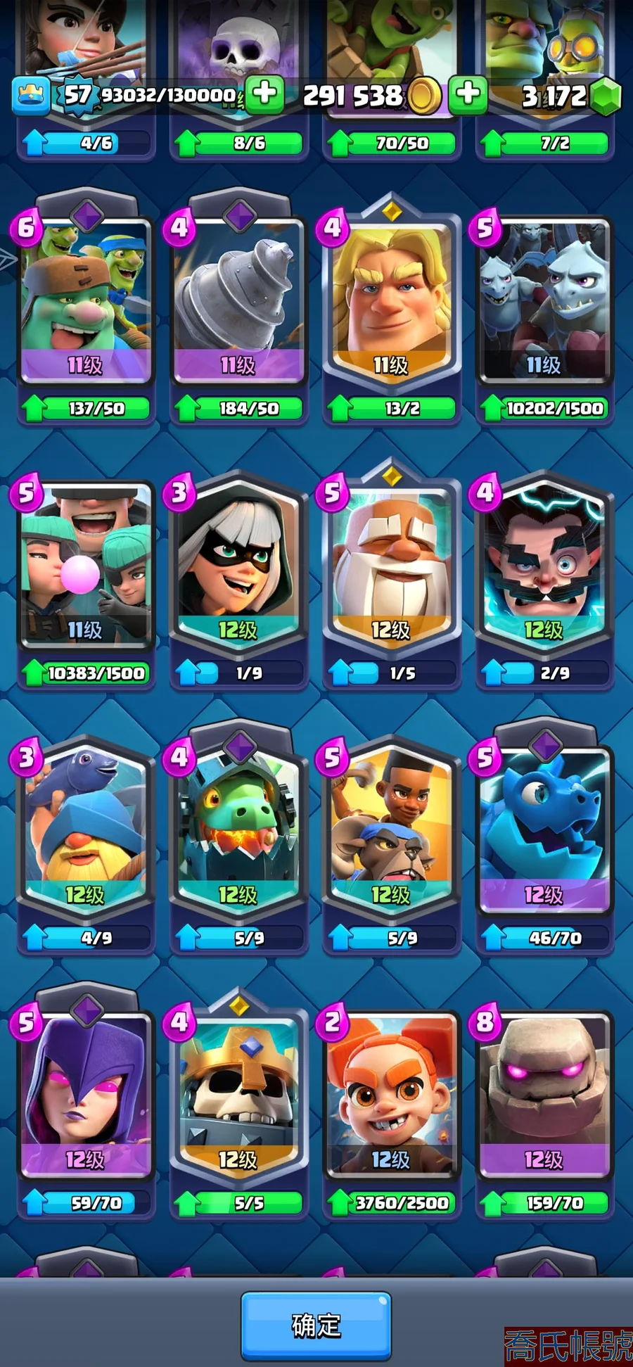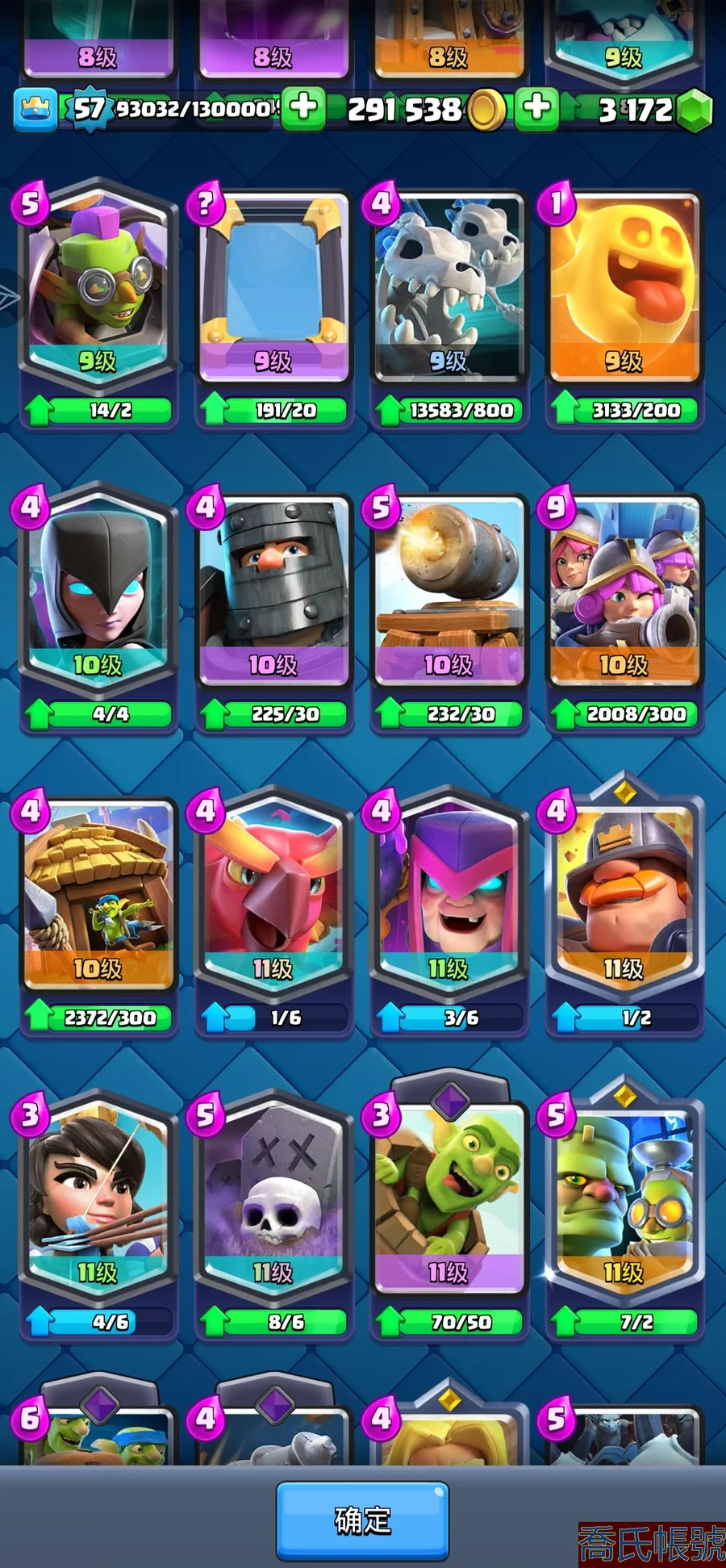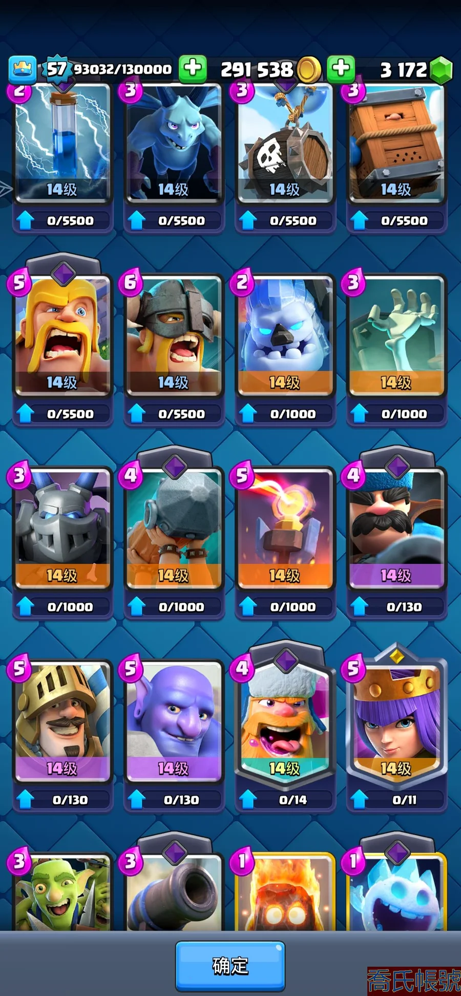 【OBHNINW580342】角色等級:57|獎盃數量:10000|競技場等級:25|超凡數量:3|滿級數量:52|可 可