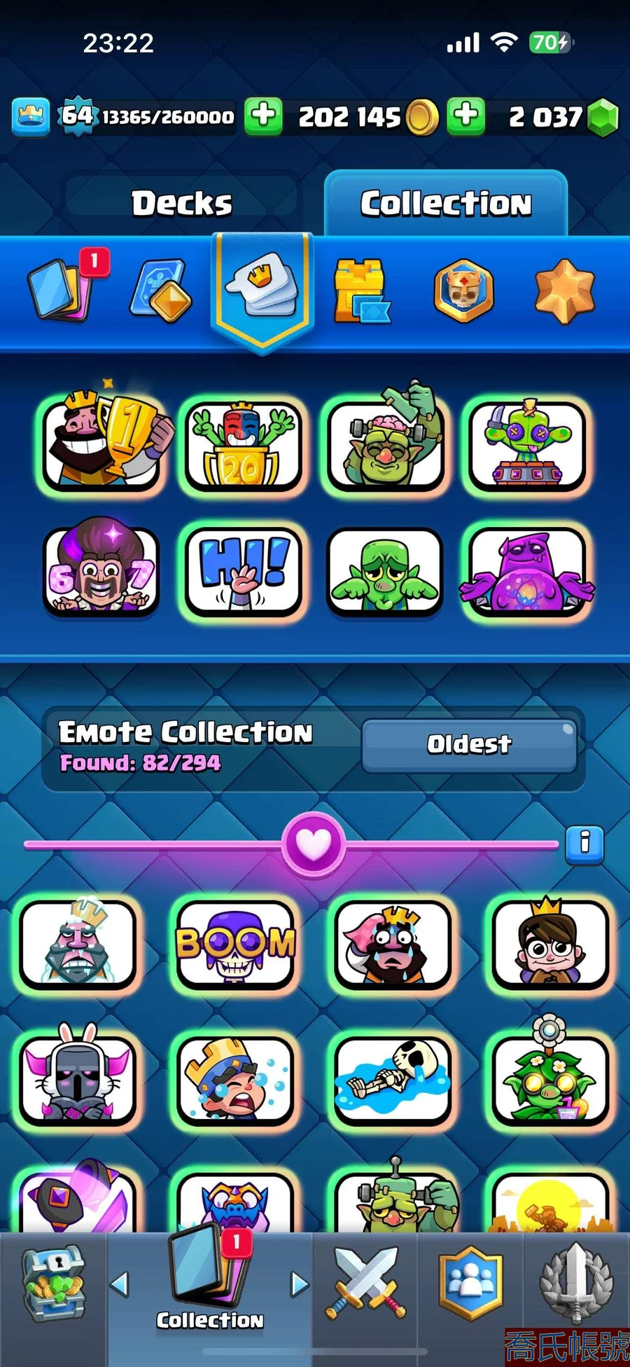 【OBHHVZH951542】角色等級:64|獎盃數量:10000|競技場等級:10|超凡數量:31|滿級數量:75|按熱門表情:咪咪咪,陰陽臉,擦杯獎|皇室戰爭64級雙表情!錦標賽全球top45,2024年20勝 皇室戰爭64級雙表情!錦標賽全球top45,2024年20勝