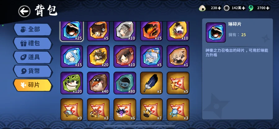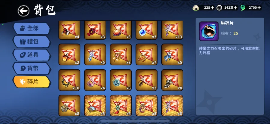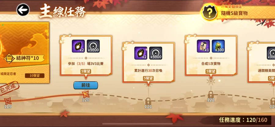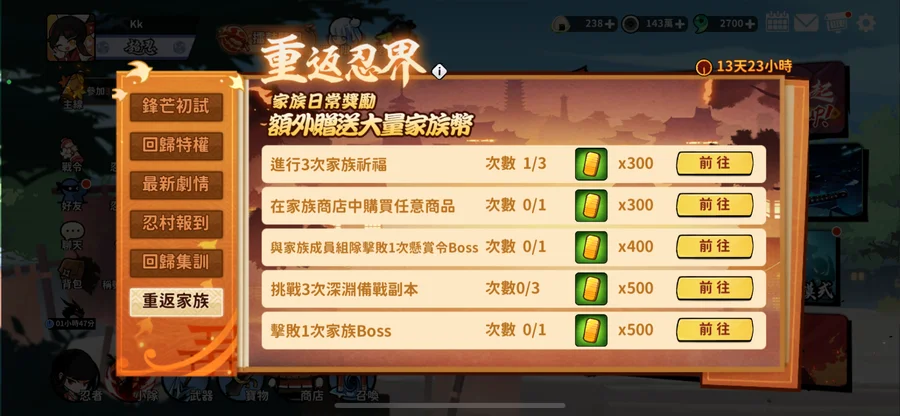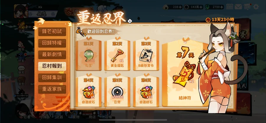 ✔ 2700勾玉、390自選石、8結神符、9金鑰✔ 回歸號有回歸任務、新手主線任務