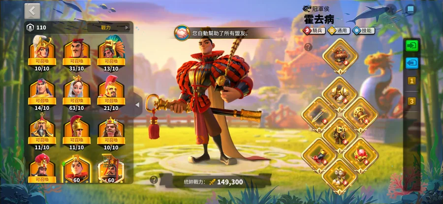 版本強勢、野戰武將基本上都有只是沒召喚或是已經召喚了放在最下面