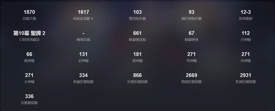 ✦ 地圖除了璃月其他全100%,成就數1617