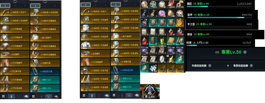 滿採集、滿鍊金、滿手工藝