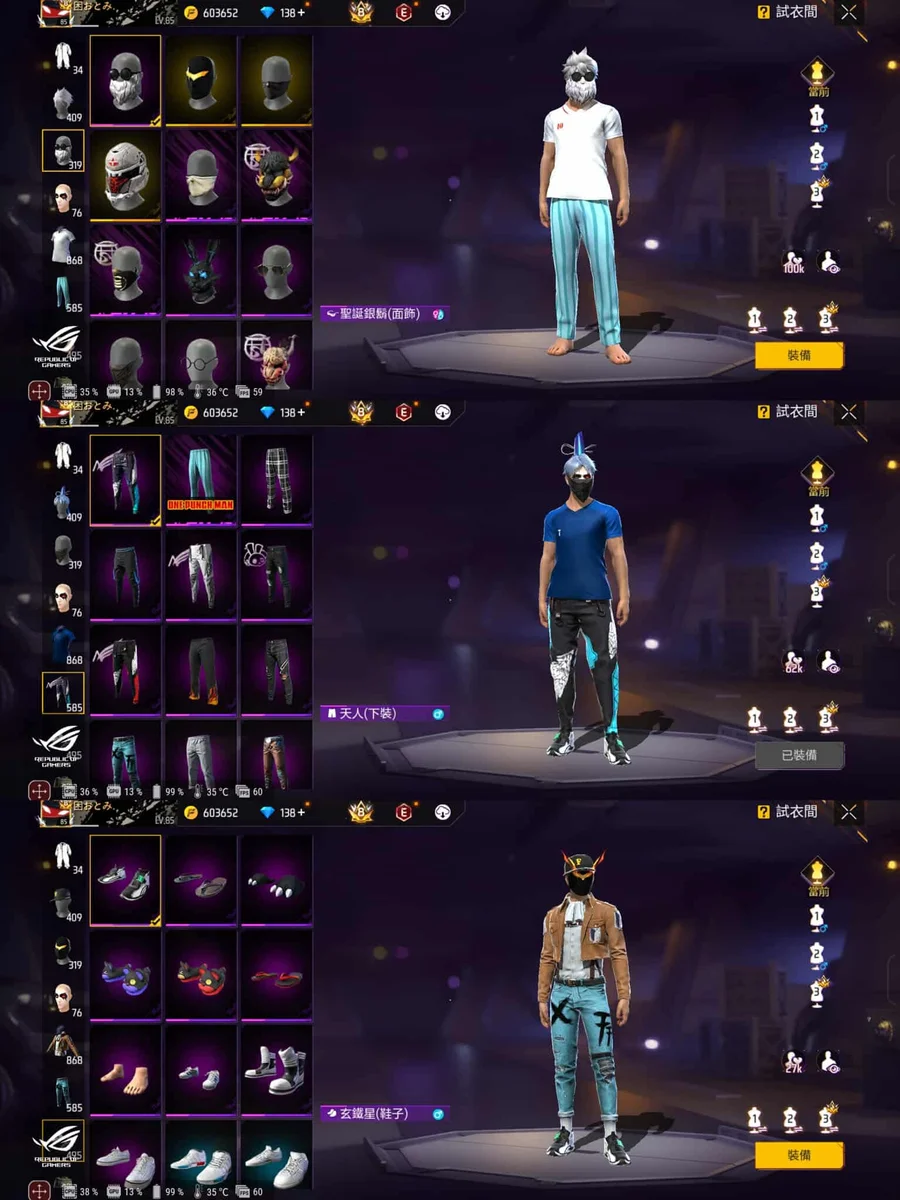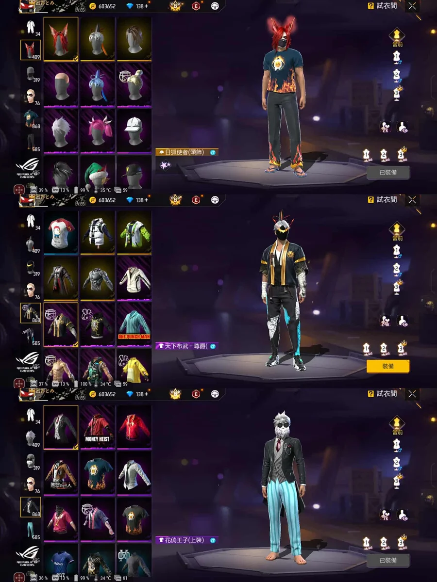 主打:一季黑金/初代風衣/睡衣/二季/調查兵團/一拳拳頭 /機甲/伏地挺身/合金/黃金衣