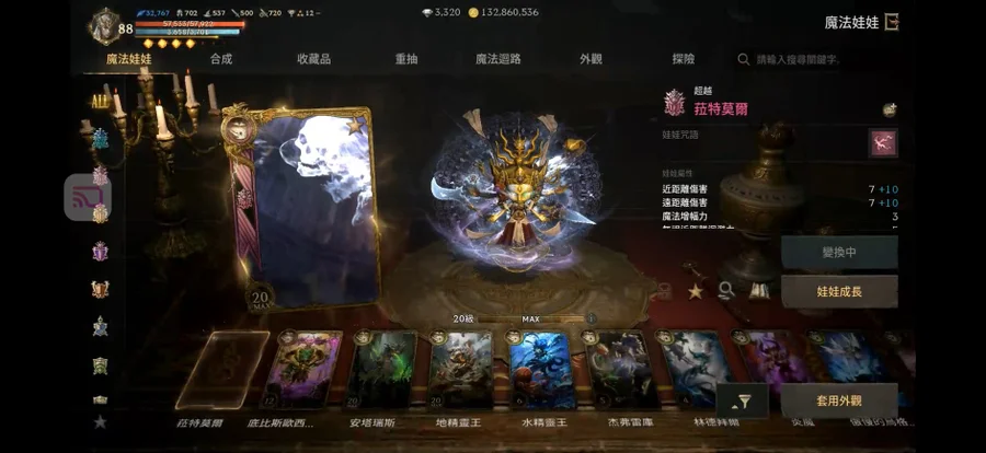 【娃娃收藏】: 收集卡片242/299 (80.94%)、完成收藏品499/818(61%)