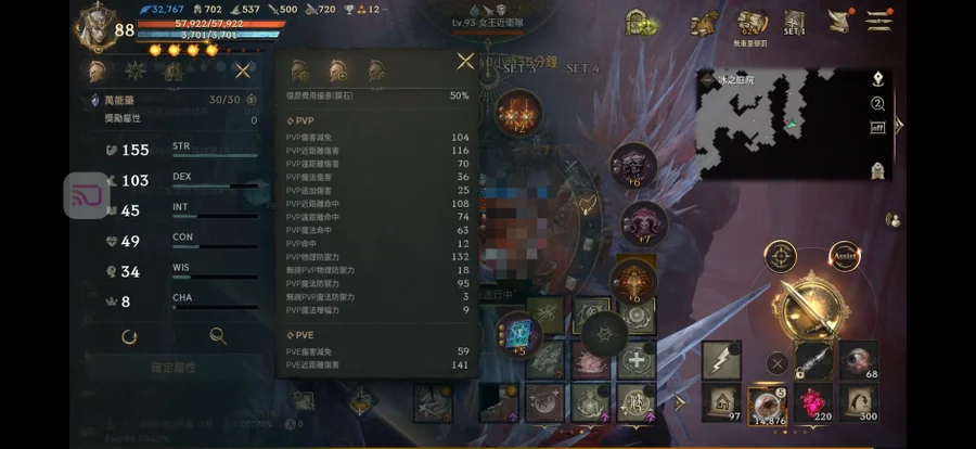 攻速3%、近傷+79、近命+105、力量+30、物防+145、無視物理防禦力+35、無視近迴+14、傷害減免+51、PVP近傷+35、PVP近命+28、PVP傷害減免+30、無視PVP物防+7
