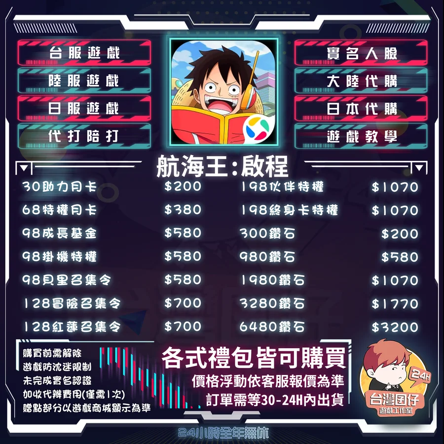 6️台灣囝仔台陸手遊代儲純粹為協助代儲服務,僅收取服務費,無賺取額外差價。
