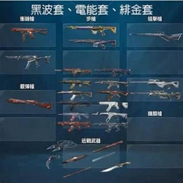 【金牌、28槍、7刀】熱門黑波套,電能套,緋金套,混沌異星紫金等多暴徒造型,prx手槍、棄王大狙等槍