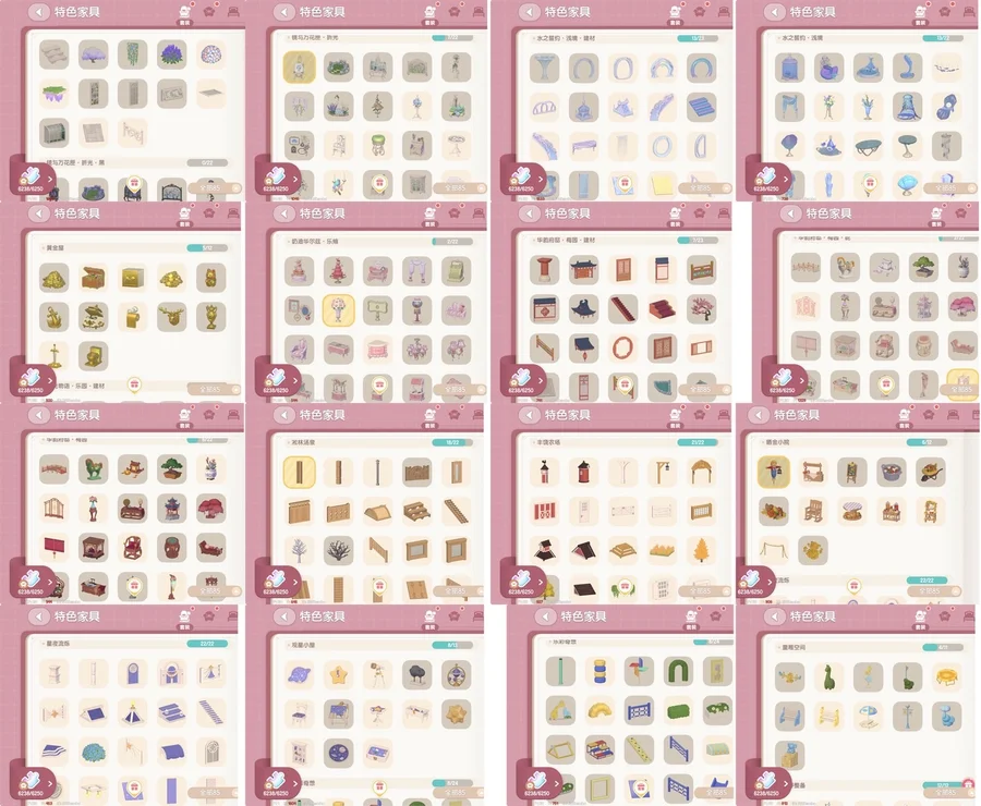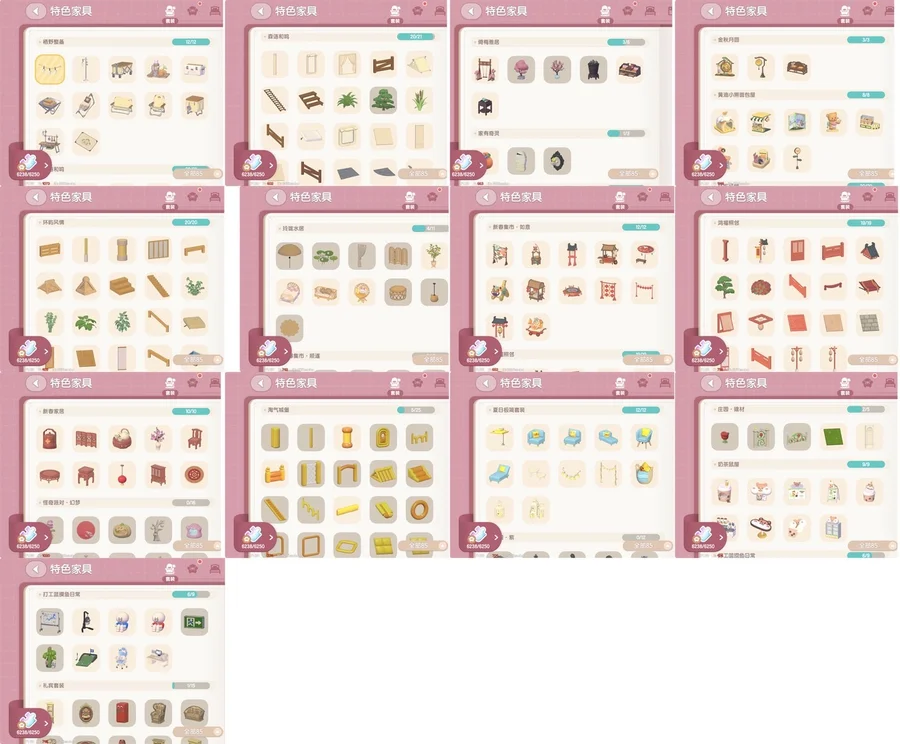 ▪限定傢具:中秋(全)、奶茶鼠(全)、黃油小熊(全)、小藍人(6/9)