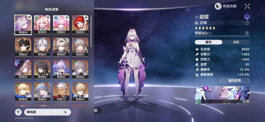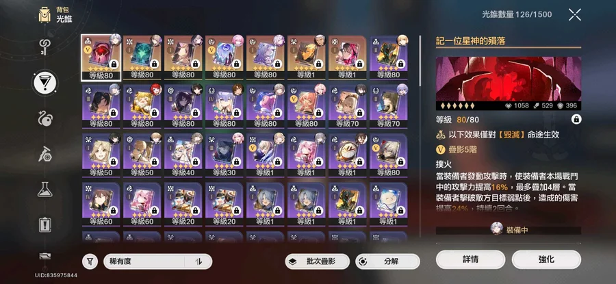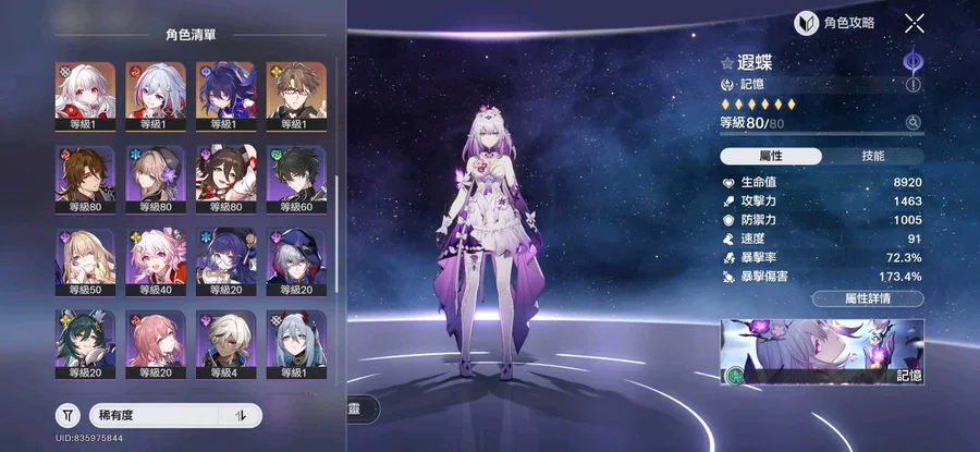 10緹寶,01大黑塔,00白厄,01霞碟,00昔蓮,00風堇,00星期日,00saber,01拉矢男,00流螢,20鴨鴨,00克拉拉,00托帕,00希兒,01列車眼鏡男子,商店還可換1自選5星