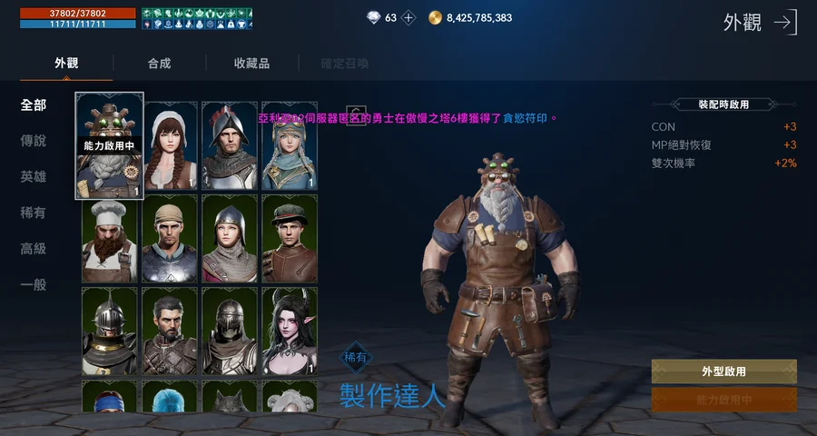 共通技能 知能加持 智慧加持 衝急抵抗1 技能能量加持1 高度精準 皇家精通武器 推進 連環加持2 絕對精準2 穿刺技能阻絕 豐沛傷害 降減武器能量 狩獵大師