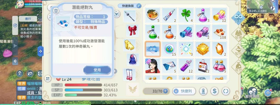 1服超強開局/潛能12/女火屬(夢境花園)/安海度亞娜/浦通+絕對潛能丸/可改密碼