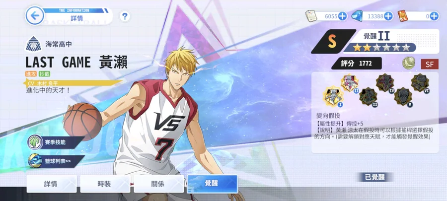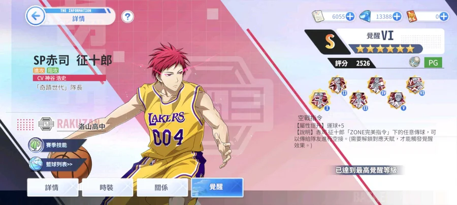 【68等】6覺sp赤 NBA 谷松 6覺綠間傳奇衣 2覺傑森特效衣 2覺LG黃 2覺z紫