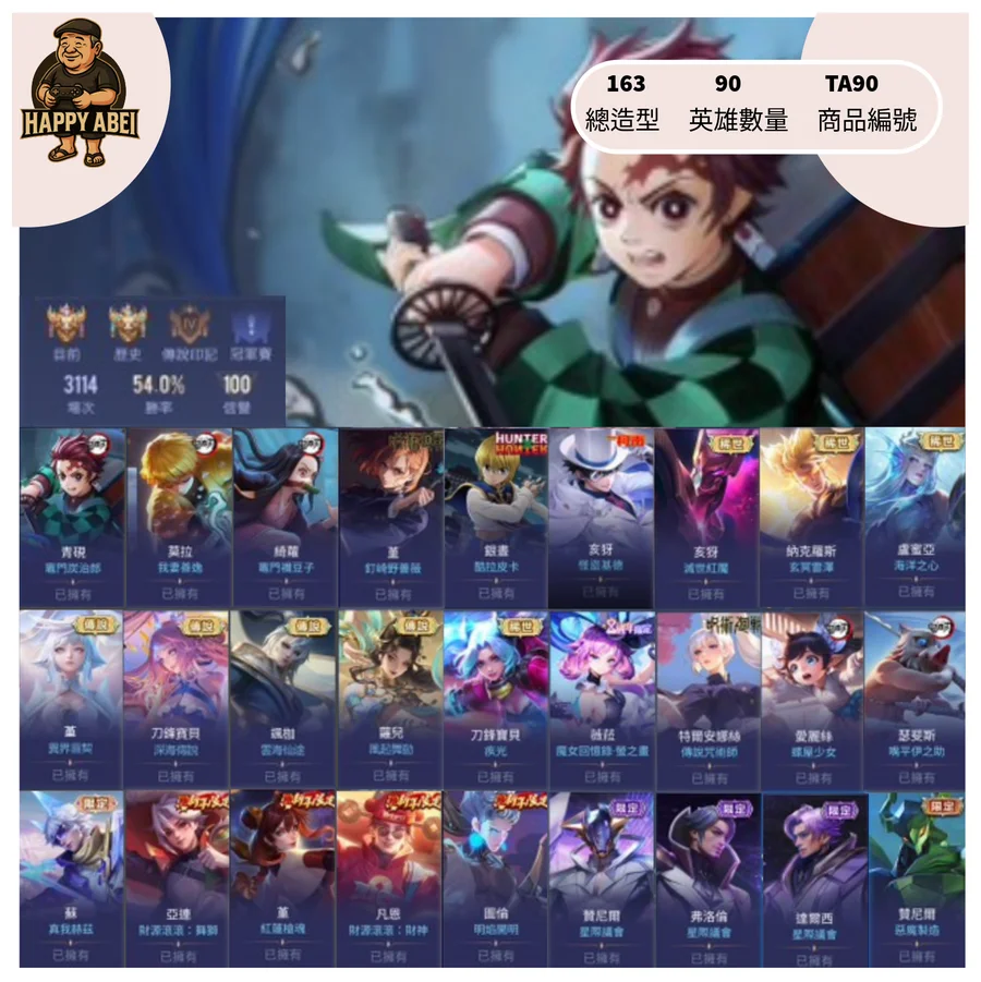 【Garena帳有綁定、青銅、無VIP、90英、163造】[分期/直購]快樂阿北遊戲館~主打青硯炭治郎莫拉善毅綺蘿禰豆子納克玄冥堇釘崎庫