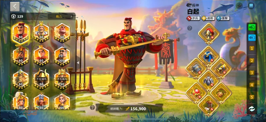 1.白起華萊士2.劉徹亞力3.嬴政諸葛4.霍去病貞德5.亞瑟阿基里斯